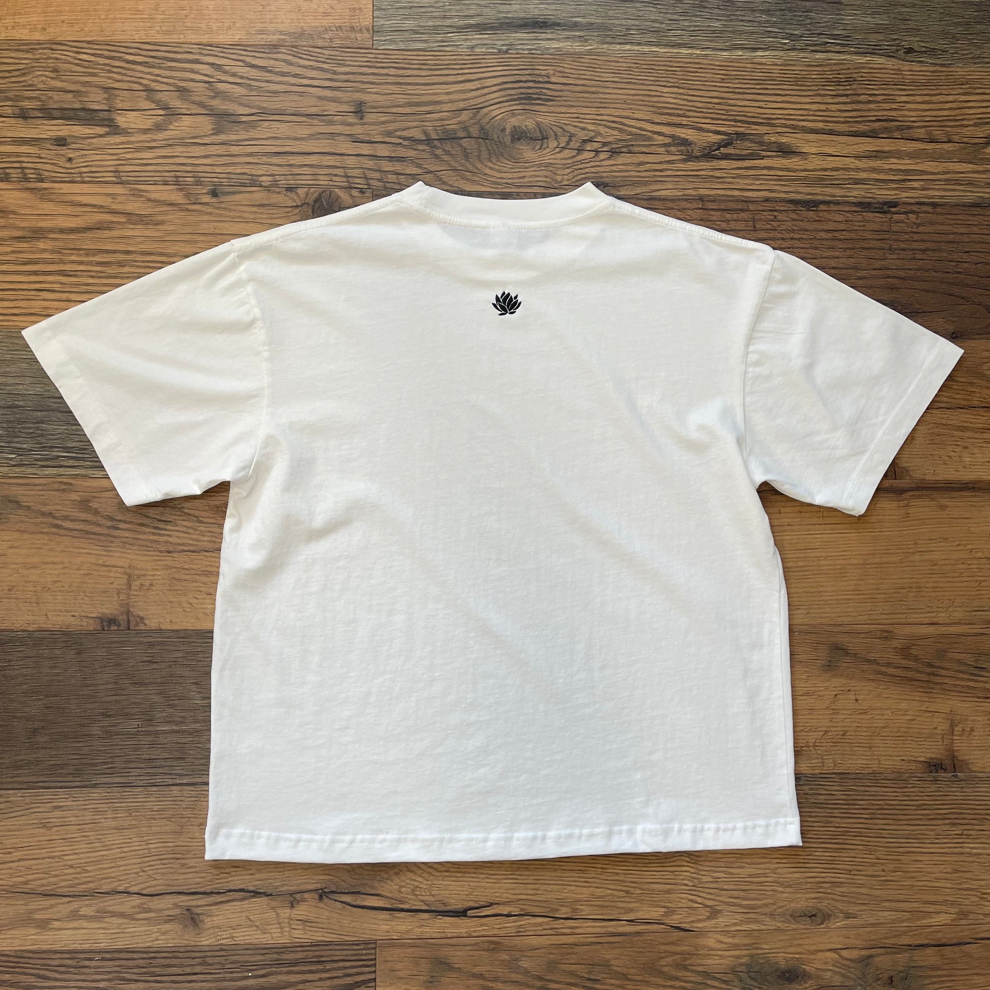The 7.5oz combed cotton is a flowy-breathable fabric perfect for the hotter summer days ahead. All of these shirts have a specific enzyme wash which allows the vintage aesthetic and fades beautifully wear after wear. Color is Cream White with a subtle black lotus on the back.