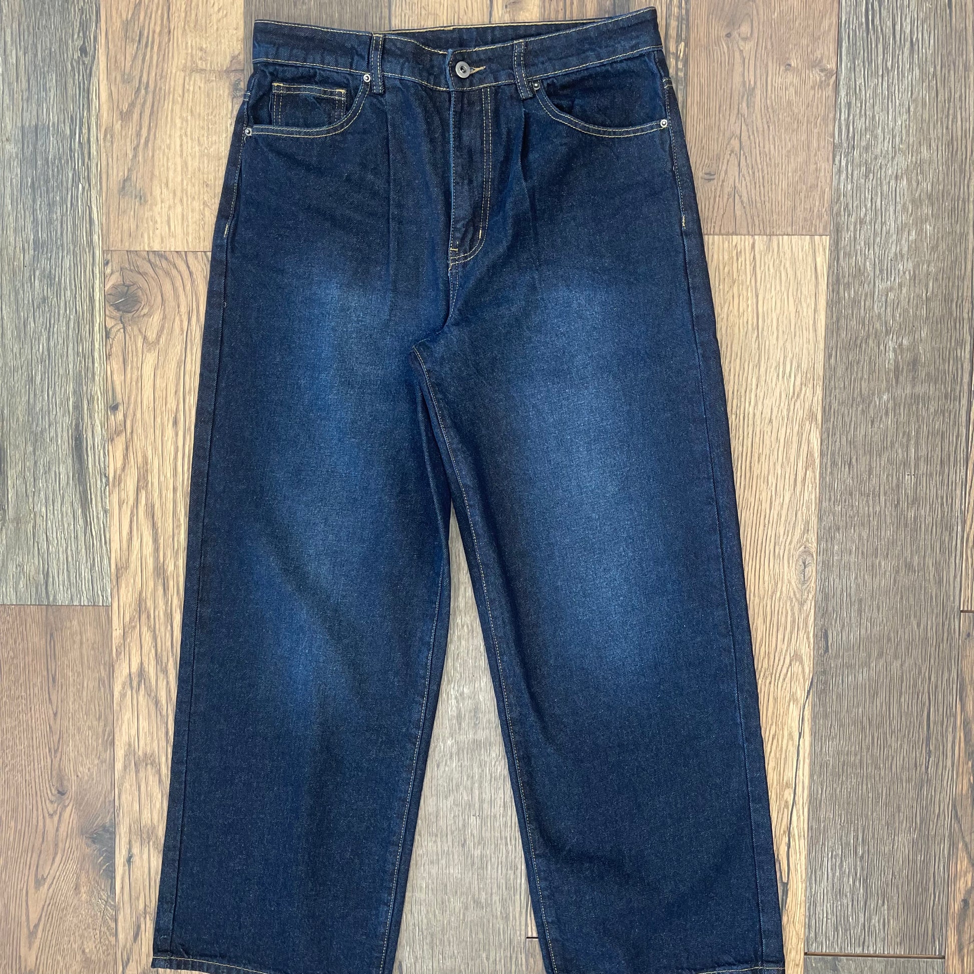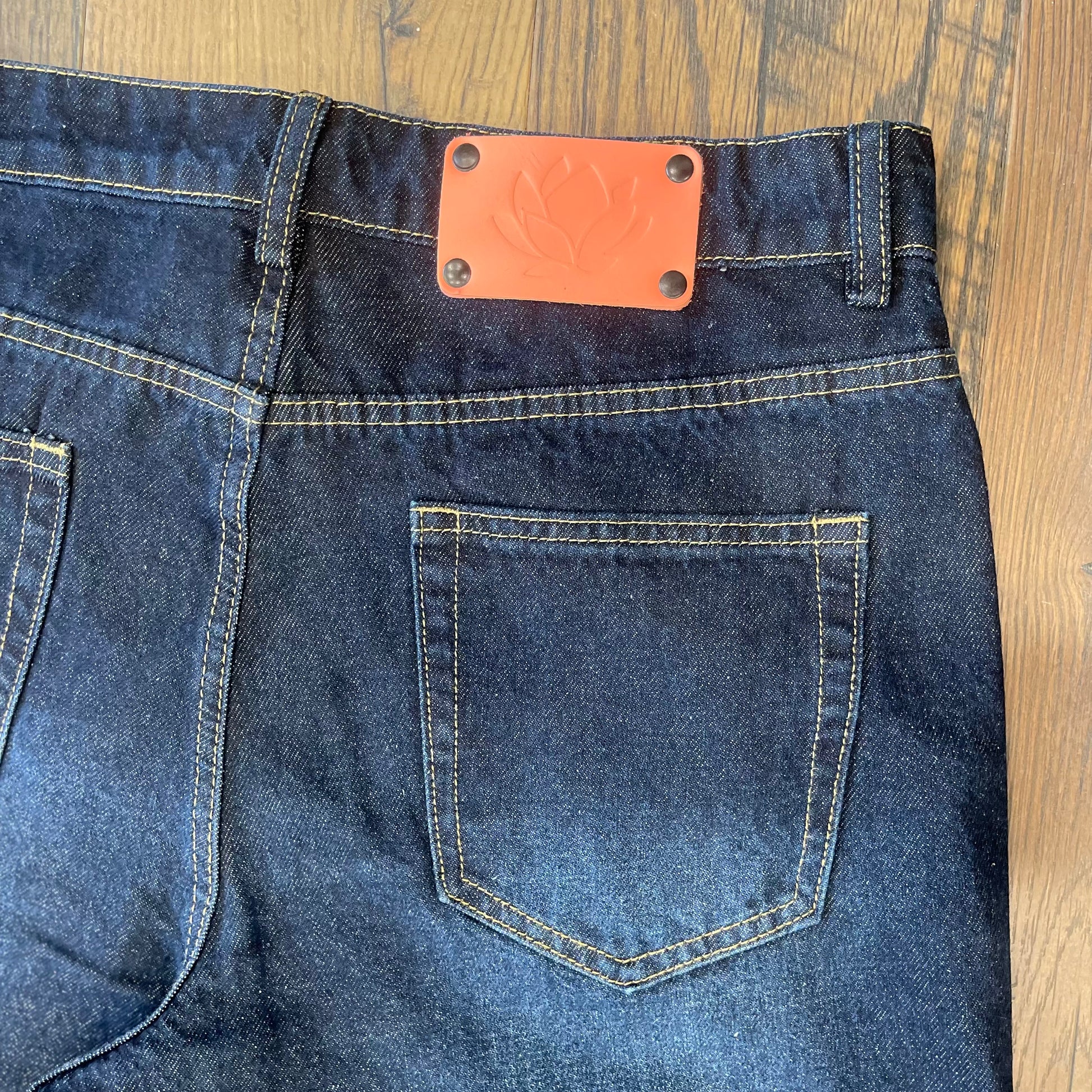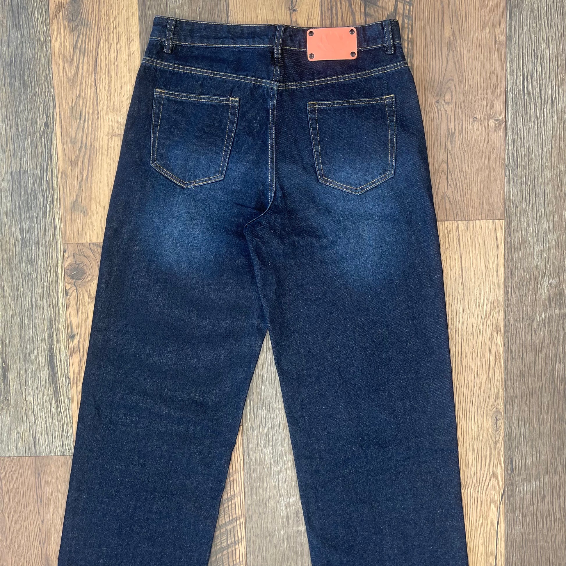 The Lotus denim blue jeans are a perfect baggy fit. They are simple and clean with a natural fading. Featuring our original Pink Leather Lotus label, these jeans will be your new favorite.