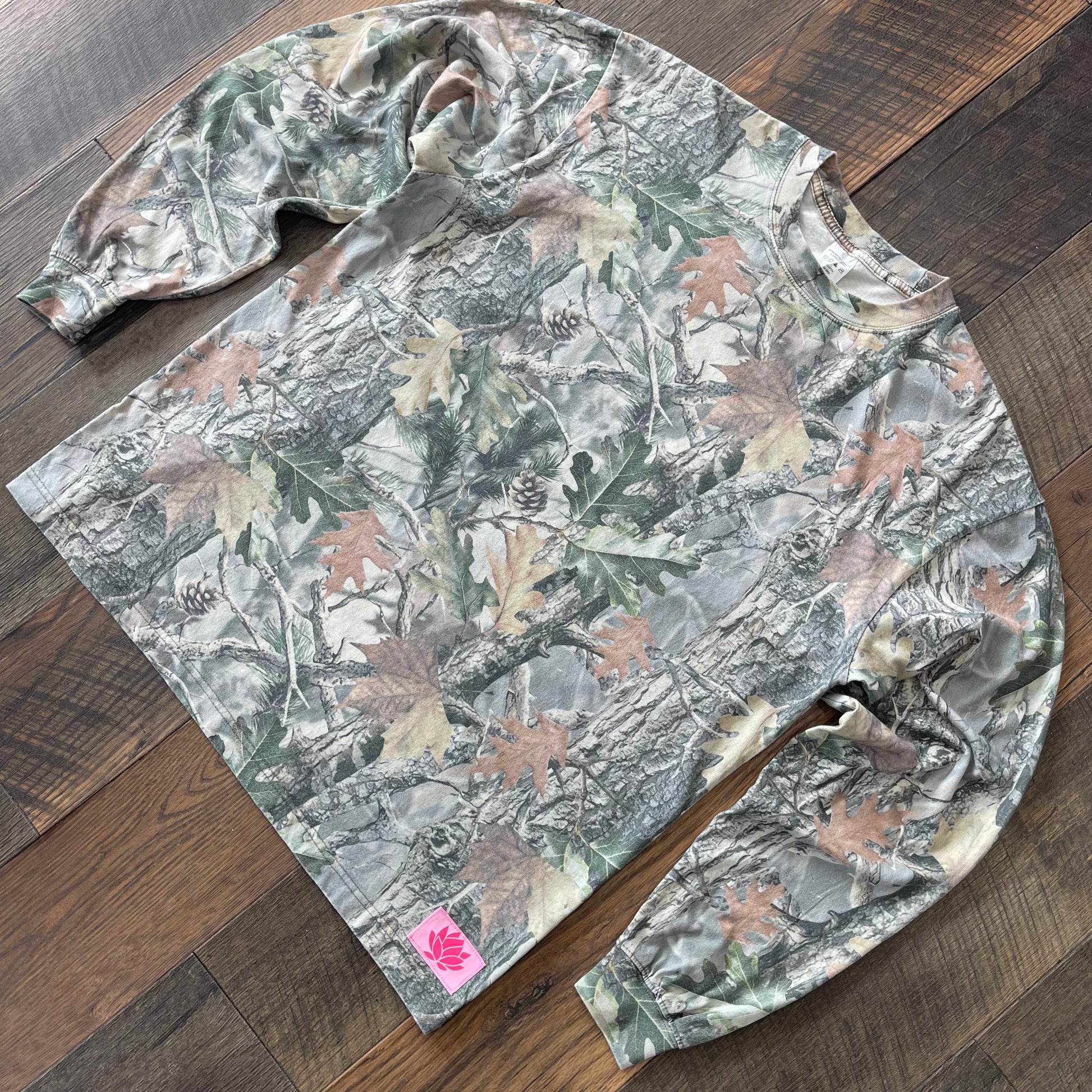 At 7.5 oz, the Lotus Hazy Pink Label long sleeve has an oversized boxy fit and features a unique enzyme wash. Everything you want in a camo long sleeve and more. Limited Quantity-no restocks.