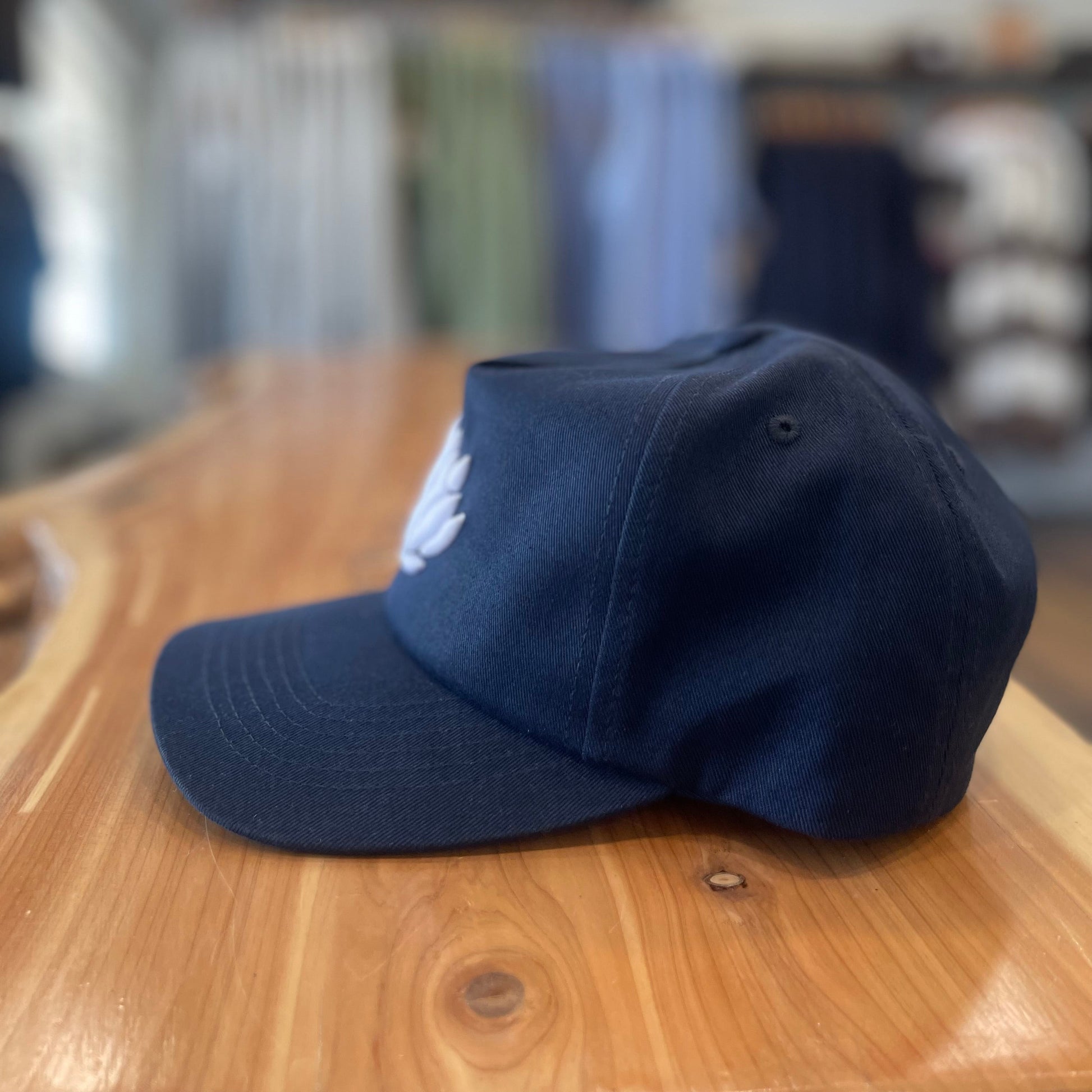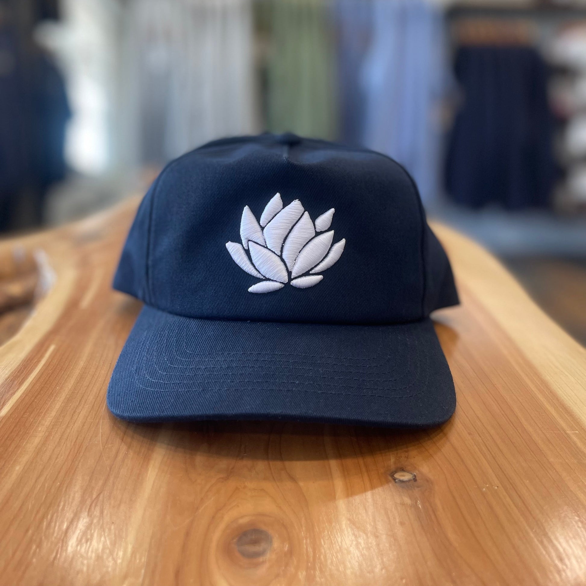 Introducing a new Surf Lotus 5-panel snapback featuring Oeko-Tex Standard 100 certified cotton fabric and a visor peak crafted from Scope Certified recycled materials. Universally sized for a comfortable fit, all Navy Blue with a White puff embroidered Lotus.