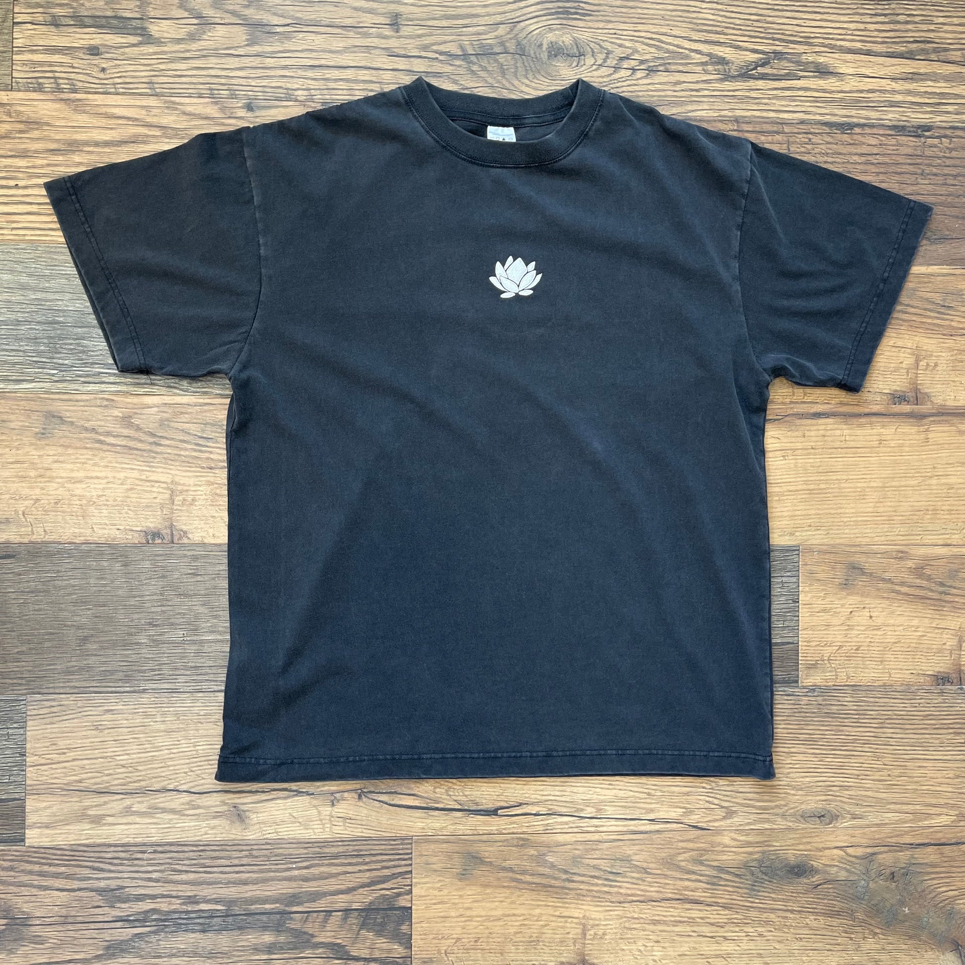 The 7.5oz combed cotton is a flowy-breathable fabric perfect for the hotter summer days ahead. All of these shirts have a specific enzyme wash which allows the vintage aesthetic and fades beautifully wear after wear. Color is Salted Black with an embroidered White Lotus logo center chest