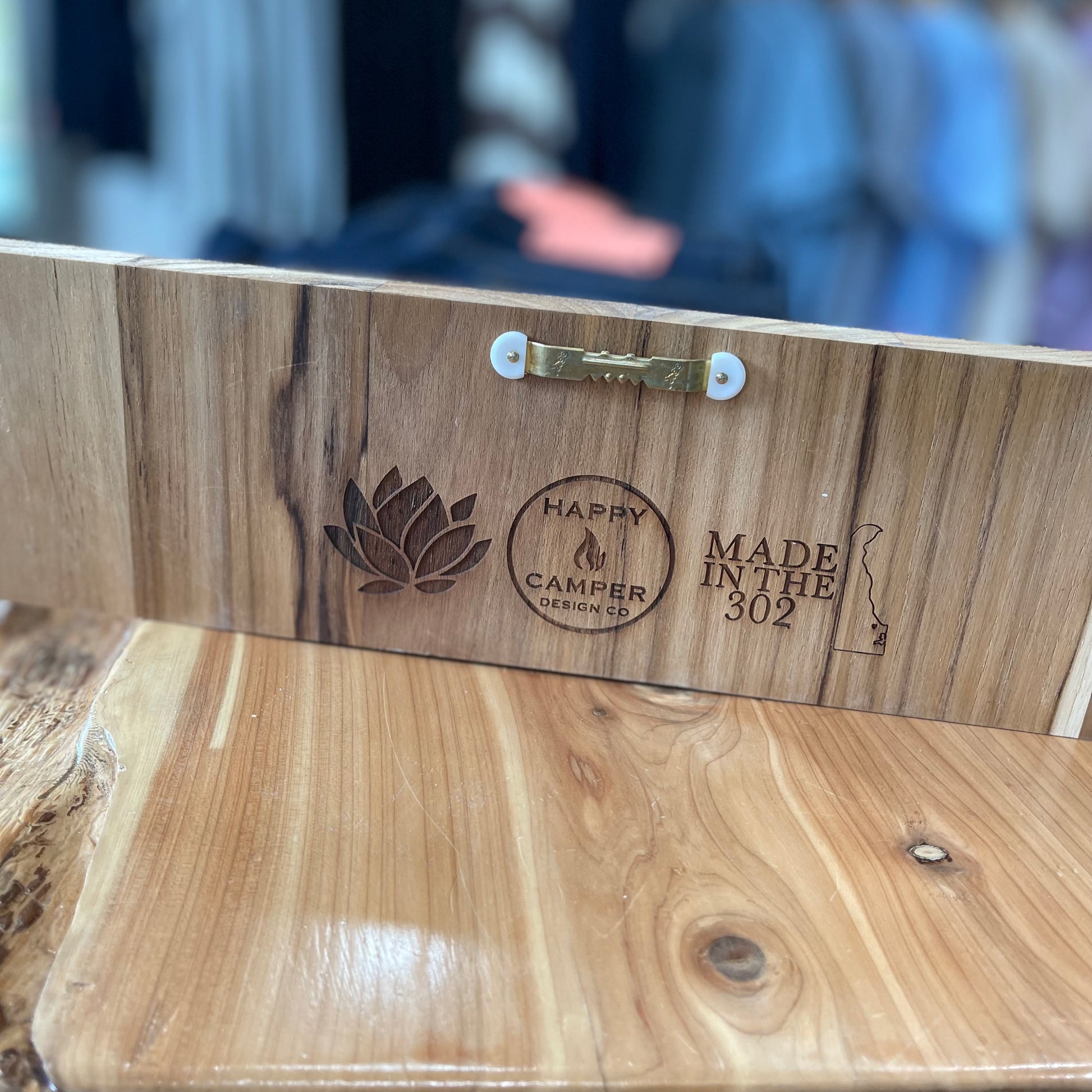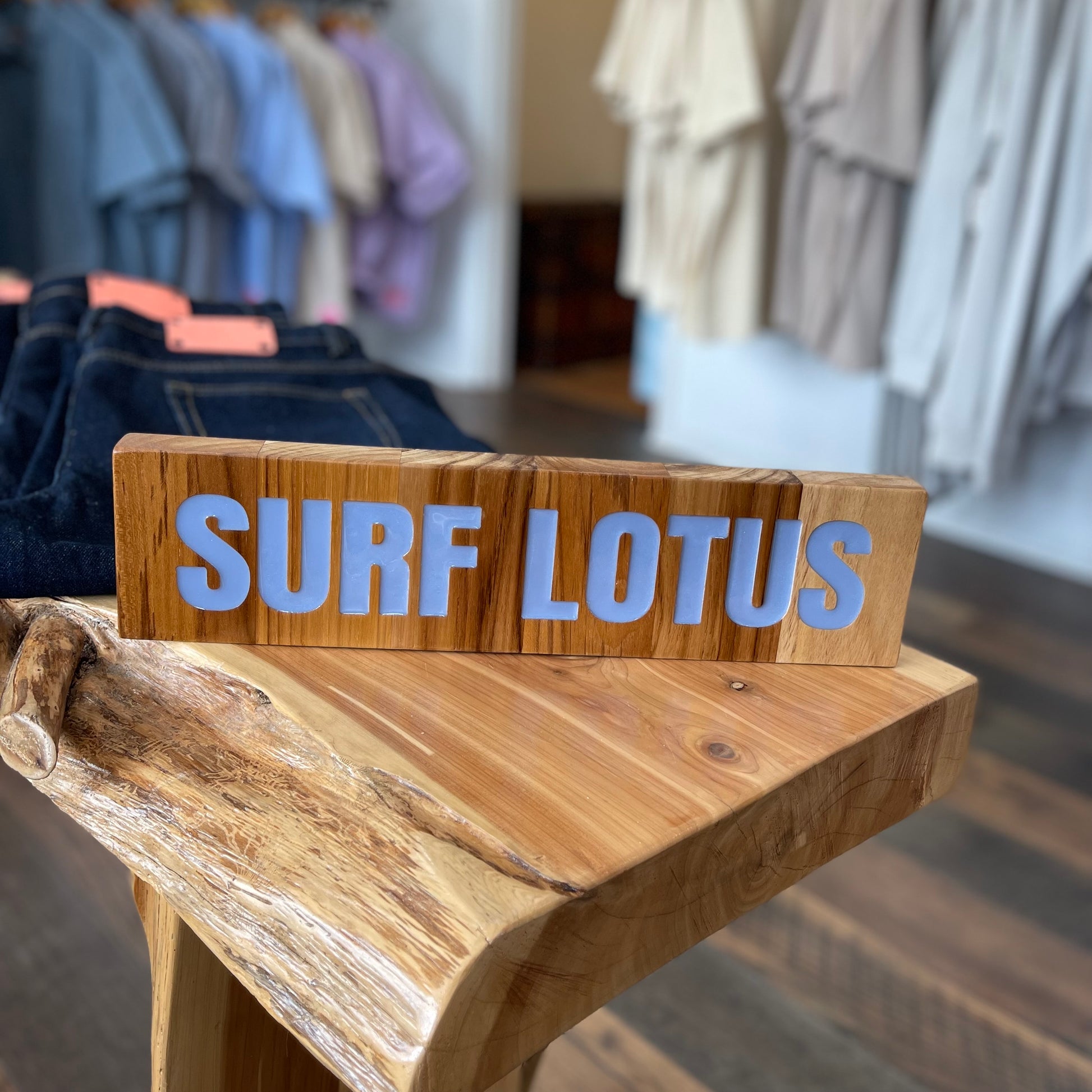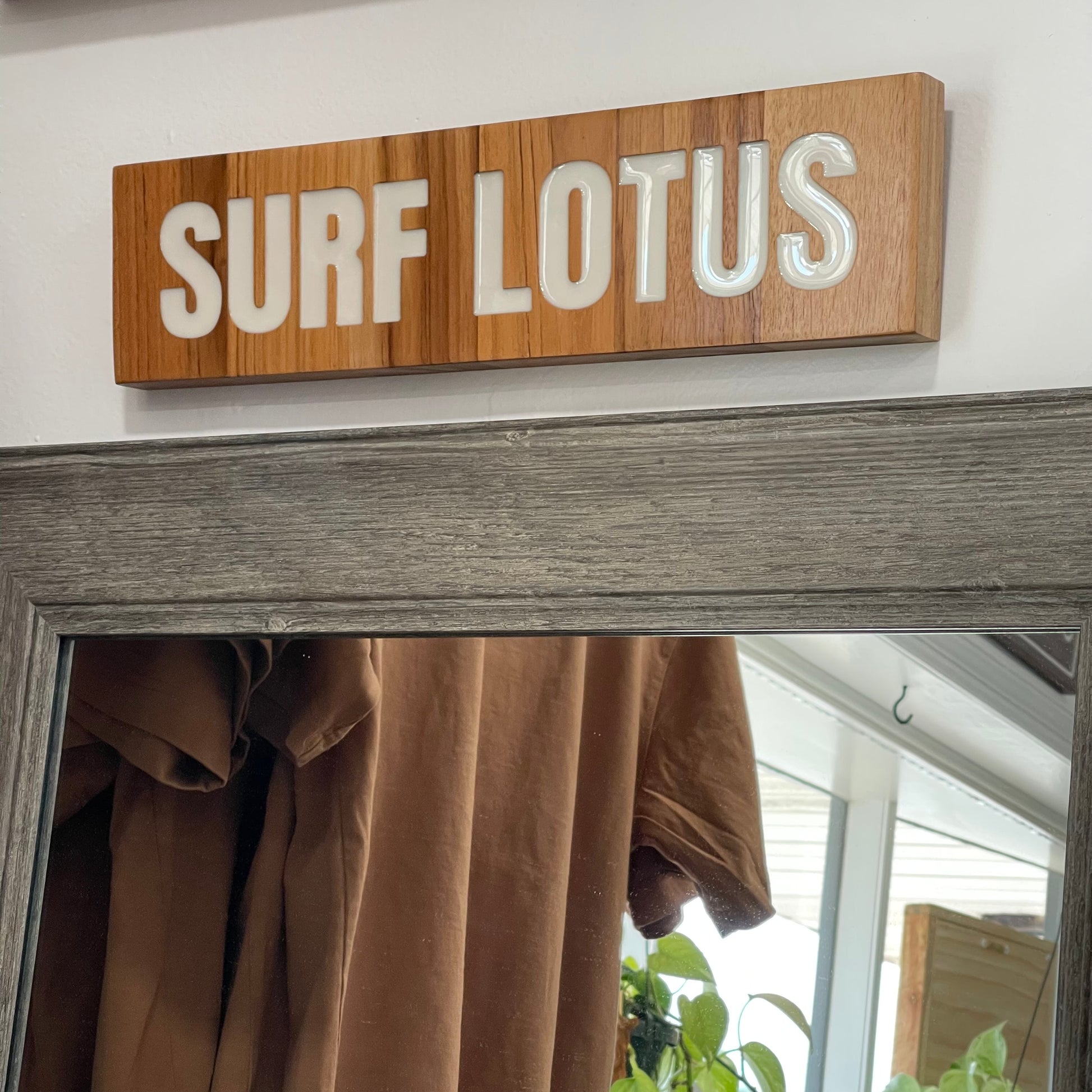 Horizontal Surf Lotus Sign in teak wood - Collab with Happy Camper