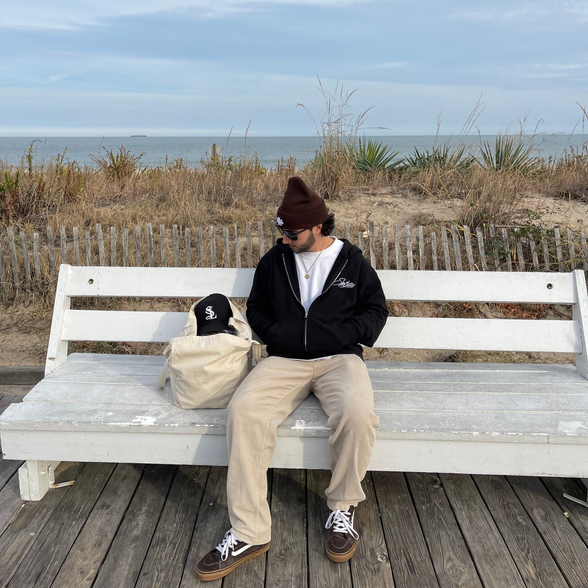 Introducing the Surf Lotus 11oz 100% Cotton Terry Fleece. With a seamless hood, chrome zipper and a slightly oversized fit, it wins over all the hearts of those who wear it. We put a zipper cover for better printing surface as well as our standard issue stitch details. The garment features our exclusive Surf Lotus Script logo. The color is Black with White embroidery.